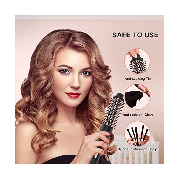 💐8 IN 1 CURLING IRON SET: This hair curlers set is the professional stylists’ preferred choice, which including 5 barrels(3 barrels, 0.35inch, 1.35-0.75inch, 1.25 inch, 1.5 inch curling brush), 1 heat resistant glove, 2 hair clips. Multiple size barrels let you create your own different curly hairstyles, Straight with soft bents, beachy wavers, S-shaped Waves, large loose curls, or Dense Springy Coils… Salon at home, You decide your definite hairstyle. PS: CURLING BRUSH IS NOT A DRYER