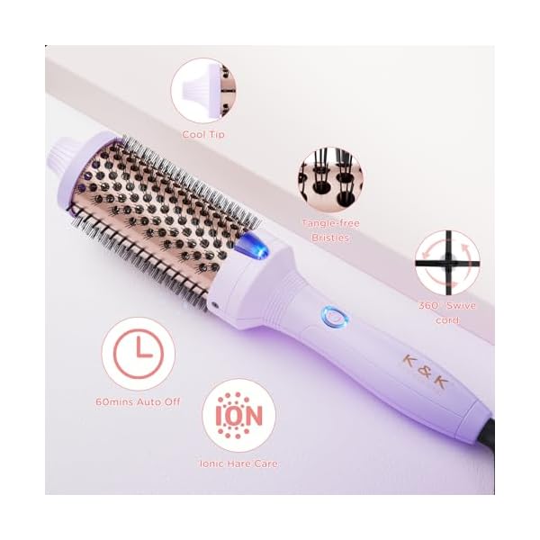 K&K Curling Iron Brush 1.77 Inch Ceramic Tourmaline Ionic Hair Curler Hot Brush Create Loose & Volume Curls Ceramic Tourmaline Ionic Curling Wands Heated Styler Brush for Long Hair (Purple)