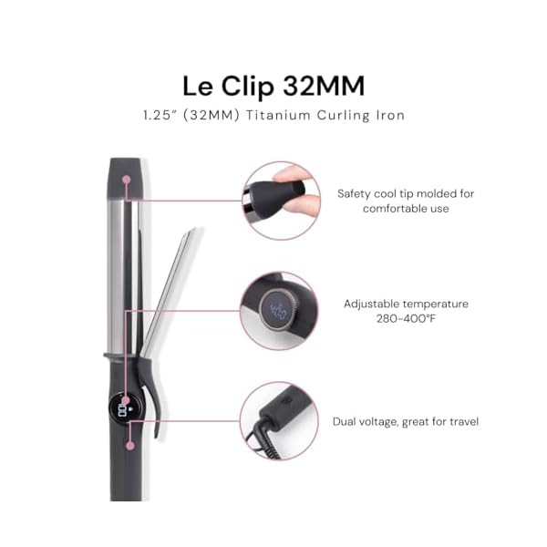 SAFETY. CONVENIENCE. RESULTS. – The 1.25” (32mm) barrel size is ideal for crafting looser, more relaxed curls for all hair types, with an ergonomically molded safety cool tip for a comfortable grip and a large, easy-to-read digital temperature dial.