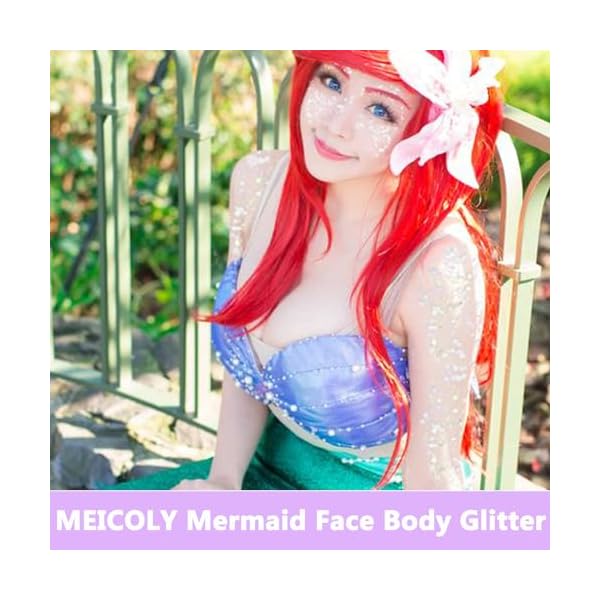 Wide Applications — This cosmetic chunky glitters flakes gel perfect for your body from head to toe: face, body, eyeshadow, lips, cheeks, hair, nail art, and more,perfect for rave hair accessories and face glitter rave.On the body, dust some on the collarbones and shoulders for a super shimmering effect