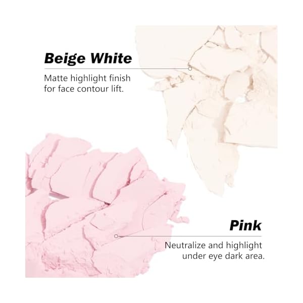 【Under Eye Highlight Concealer Powder】Dual color white and pink powder, natural matte highlight finish. Help you cover dark circles areas and nasolabial precisely and then achieve face contour lift.