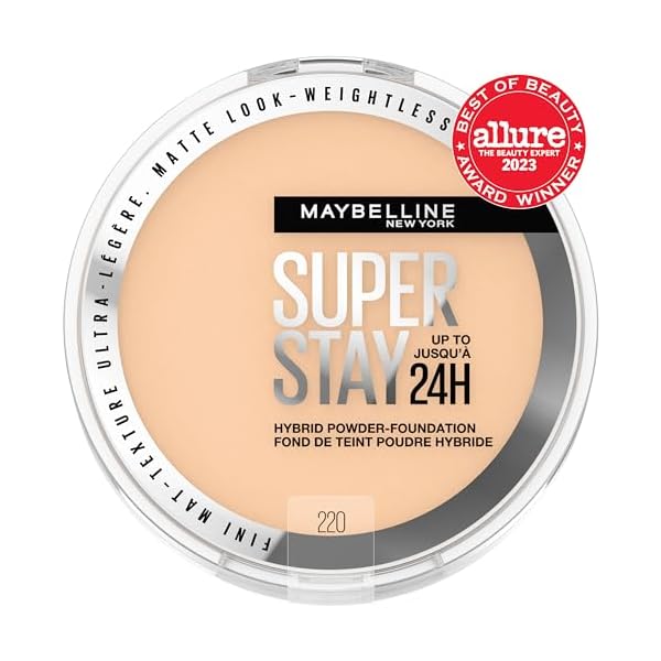 Maybelline Super Stay Up to 24HR Hybrid Powder-Foundation, Medium-to-Full Coverage Makeup, Matte Finish, 220, 1 Count