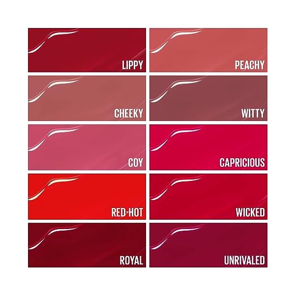 Vegan Formula: Swipe this comfortable color on your lips for an instant shine in a vegan formula with no animal derived ingredients. Now available in 20 saturated shades from bold red to nude. Get up to 16H of no-budge wear.