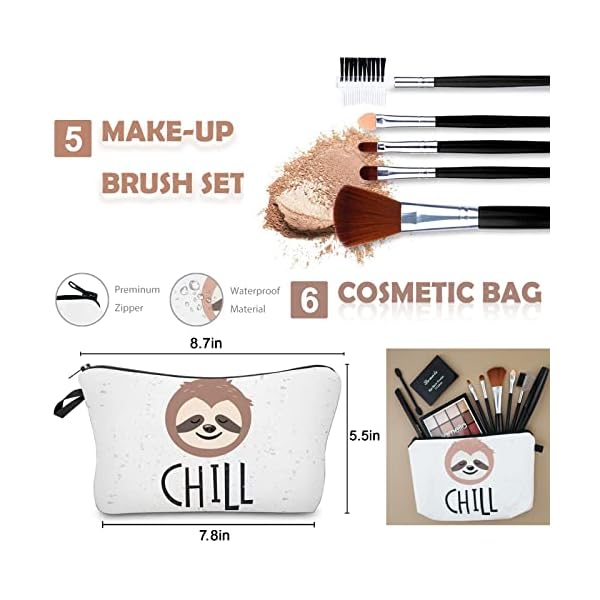 ❤ What’s in the Makeup Set? : 1 x 16 colors earth tone eyeshadow palette (1 eyeshadow brush included), 1 x waterproof and smudge-shield mascara, 1 x waterproof and smooth liquid eyeliner, 1 x tri-color eyebrow powder, 1 x sloth waterproof material cosmetic bag, 1 x 5pcs Soft Makeup Brush Set.