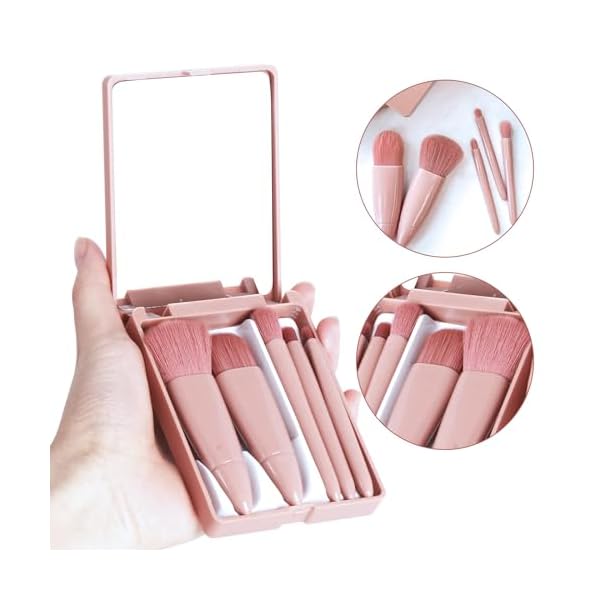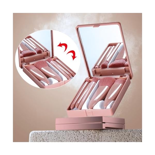 😍Travel Makeup Brush Set:1 set inclues 5 brushes, includes eyeshadow, powder, shade, lip and blush brushes. Can meet your eyeshadow, powder, blush, eyebrow makeup requirement. Allow you to achieve flawless, professional-looking makeup application every time. With mirror case together, can keep your brush safe and convienent to take when traveling.