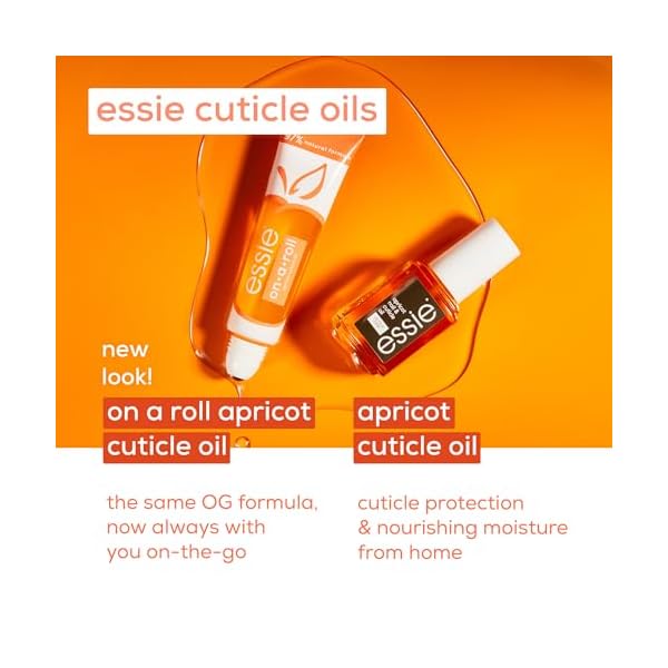 essie on a roll apricot nail & cuticle oil provides roll-on cuticle hydration and nail conditioning in one swipe. same essie cuticle oil formula you love. now available in a new mess-free, on-the-go format. the art of the manicure perfected – from America’s nail salon expert: high performance essie treatments, base coats & top coats, for every detail of your manicure. the perfect compliment to any essie nail polish color.