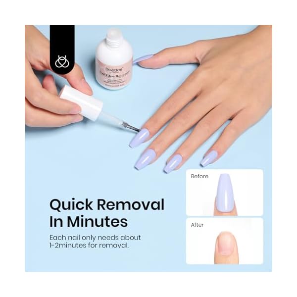 ✨Gentle False Nail Remove — Beetles nail glue remover is low odor. With a fine precision brush applicator in the bottle, it’s easy and convenient to remove the glue on nails, reducing damage to the nail and edge skin.