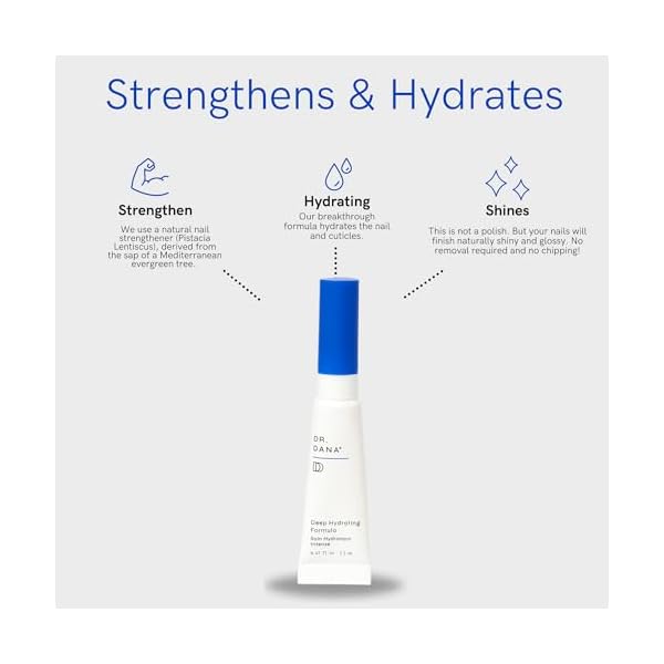 Natural Nail Strengthener Serum: The Deep Hydrating Formula developed by Dr. Dana Stern nurtures and nourishes nails and cuticles, reducing risk of breakage, peeling and brittle nails. Formulated with a natural nail strengthener Pistacia Lentiscus, our treatment enhances both nail and cuticle health.