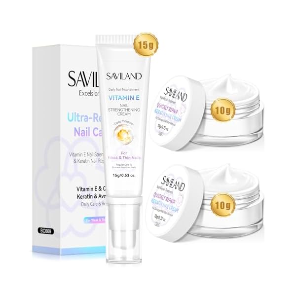 Saviland Nail Strengthening Cream with Vtamin E: Ultra-Repair Nail Strengthener for Nail Growth & Conditioning Cuticle Cream Nail Repair for Damaged Nails Nail Hard Nail Care & Gift Set Care