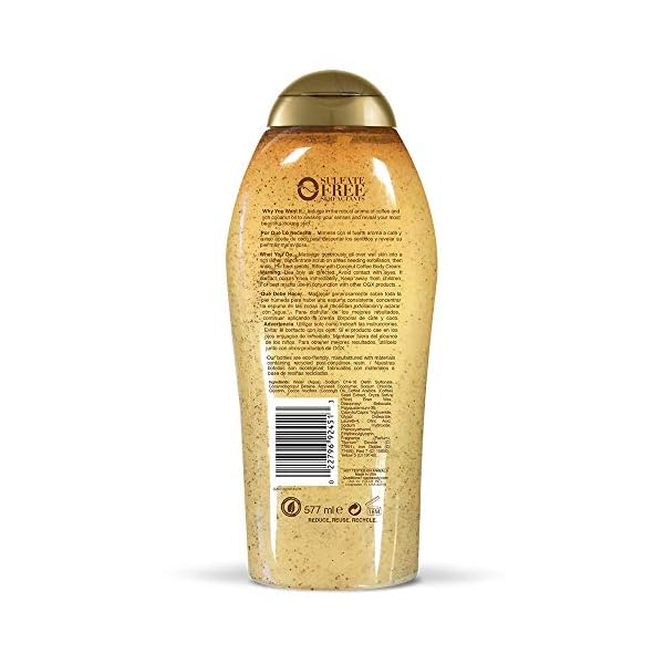 SMOOTH & SOFTEN: Indulge in the robust aroma of coffee & rich coconut oil with the OGX Smoothing and Coconut Coffee body collection. Try the Body Scrub & Body Cream for skin that feels silky-smooth