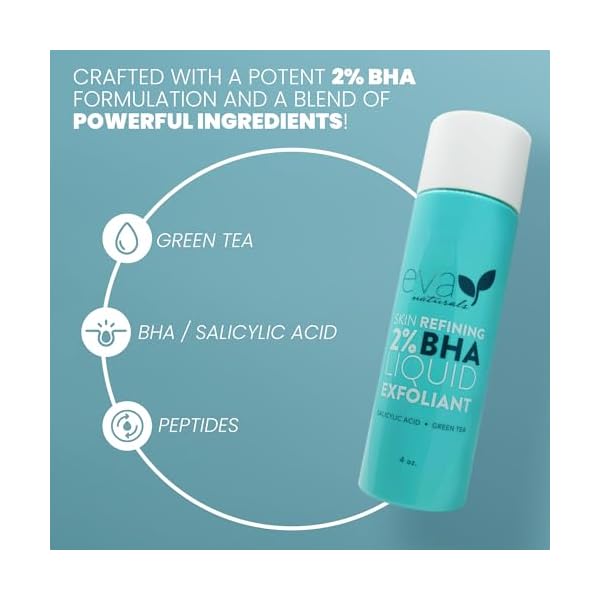 Eva Naturals 2% BHA Salicylic Acid Liquid Exfoliant for Blackheads, Enlarged Pores, Wrinkles and Fine Lines – Face Exfoliator, Evens Skin Tone, Hydrate & Brighten for Glowing Skin – 4 oz Bottle