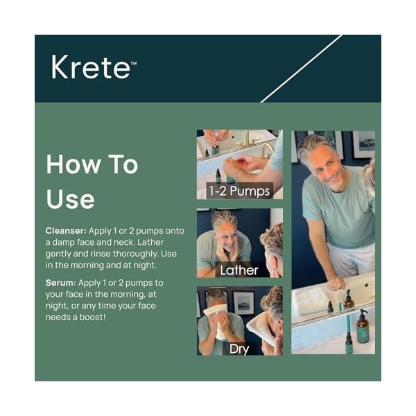 The Krete serum is easy to use, simply apply 1 or 2 pumps to your face in the morning, at night, or any time your face needs a boost!
