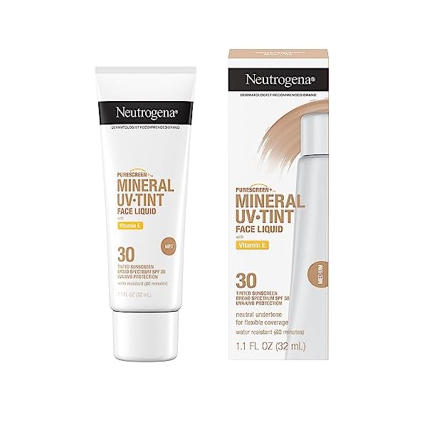 1.1-fluid ounces of Neutrogena Purescreen plus Mineral UV Tint Face Liquid with Vitamin E and broad spectrum SPF 30 sunscreen in shade Medium blends into skin and helps protect from sun-induced UV damage. This product is non-sealed