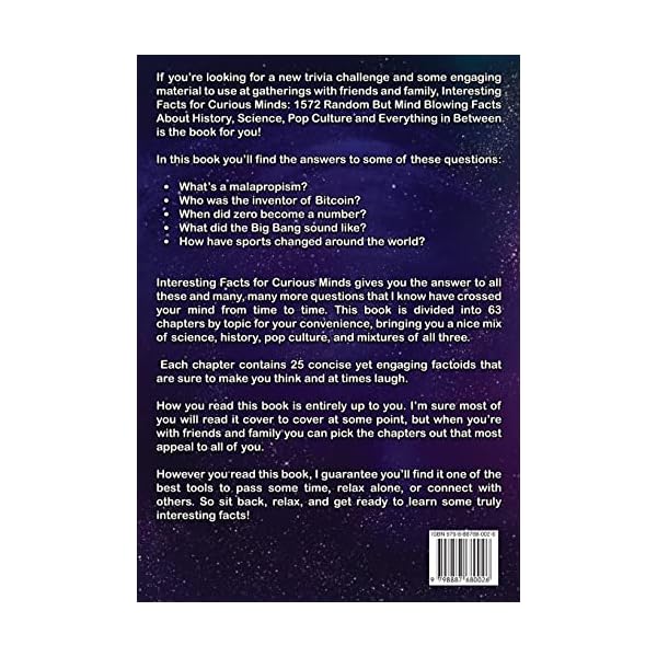 Be the first to review “Interesting Facts For Curious Minds: 1572 Random But Mind-Blowing Facts About History, Science, Pop Culture And Everything In Between Paperback – July 18, 2022” Cancel reply