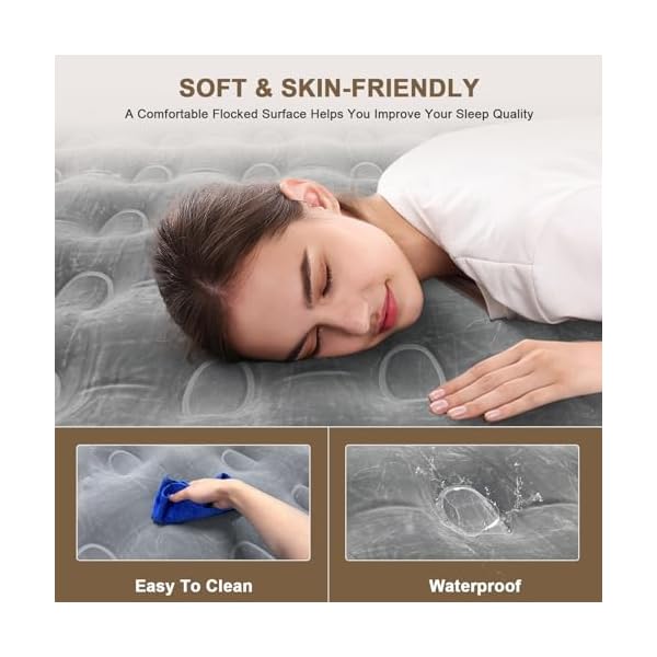 🕐Get Your Camping Bed Ready In Minutes: Our queen air mattress is easy to blow up with a practical inflation valve. Use any air pump to make a camping air bed and relax in nature. Remember that you need to inflate the air mattress several times to adapt the PVC ductility. NOTICE: This air mattress DOESN’T include an air pump.