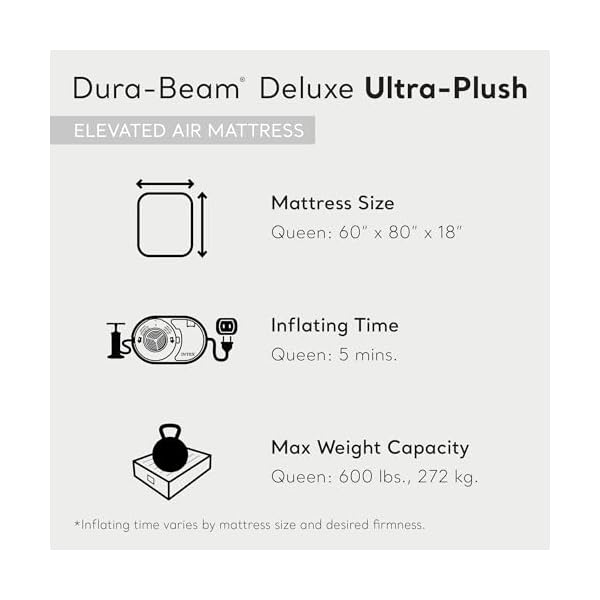 Air mattress maximum weight capacity is 600 pounds and is raised 18 inches for ease of getting in and out of bed with unique edge and bottom ring construction provide superior stability