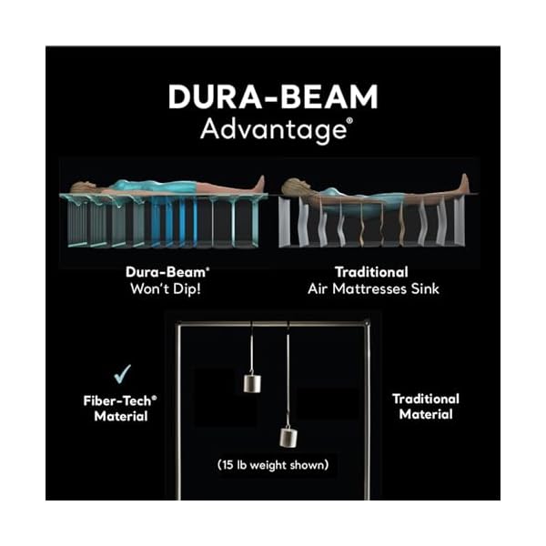 Air mattress sits at 18 inches from the floor, making it easy to get in and out and its horizontally positioned Dura-Beams provide 50 percent greater individual strand count for better full body support