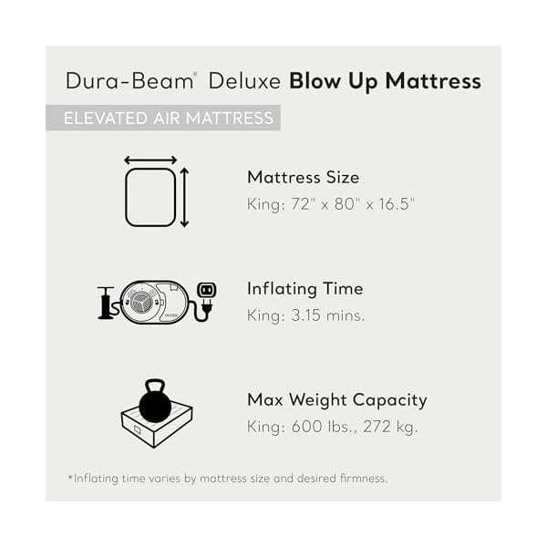Powerful internal pump for rapid inflation and deflation and approximate inflating time of 3.15 minutes for use right away