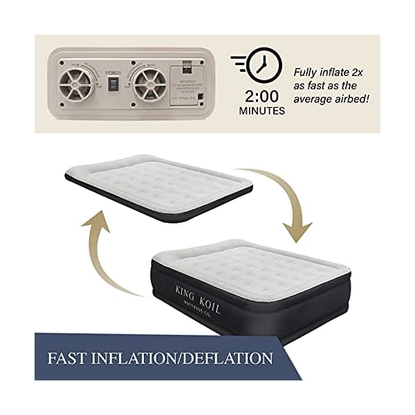 COMMITTED TO QUALITY & CUSTOMER OBSESSED: With features like enhanced air retention, effortless setup, and a premium design, the King Koil queen air mattress is the last airbed you’ll ever need!