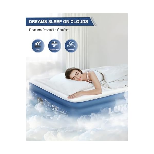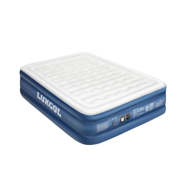 【3 Mins Inflation/Deflation】Features built-in electric air pump, the LUXCOL air mattress can be easily inflated and deflated within just 3 minutes. Say goodbye to manual inflation.