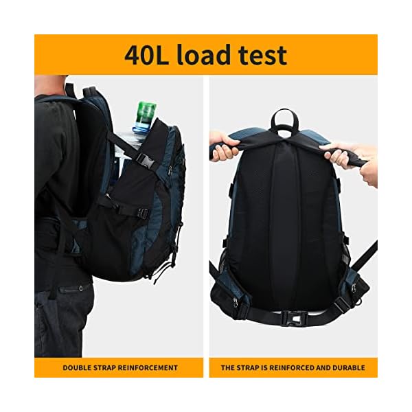 Large Capacity & Multi Compartment Bookbag – Trekking Backpack with 40L storage space(23.6inch x 12.5inch x 8inch).Heavy duty backpack features with multi-compartment design includes one main zipped compartment, one zipped front pockets,mesh bag and two side pockets. The main compartment have dividers to support 15.6-inch laptop placement and small zippered pocket are convenient enough to help you further organize things.Large capacity helps you easily organize all your essential items.