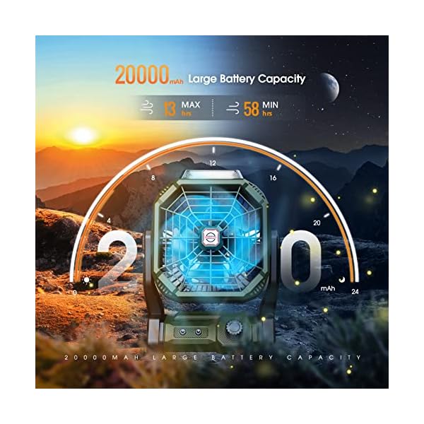 ✔【13-58 Hours Working Time】- Unlike other subpar products in the market, our camping fan has built-in upgraded 20000mAh rechargeable battery, the longest working time is up to 58 hours, bringing you longer-lasting coolness. Now, you don’t need to wake up in the middle of the night to recharge the fan or change the battery.
