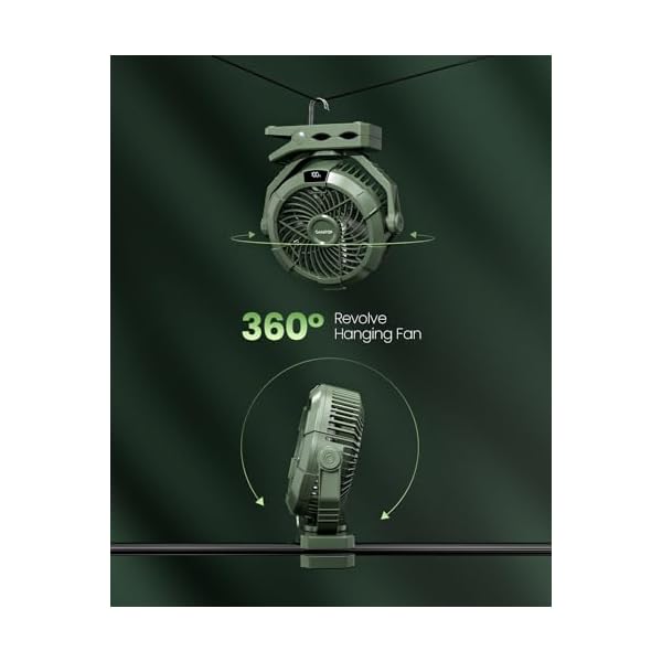 360° Oscillating Fan with LED Display: This battery operated fan rotates 360° vertically and horizontally, It can quickly cool you down in any direction you want. Led digital display screen show real time electricity, charge state and working gear,be more convenient to use as road trip essentials