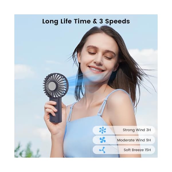 【3 Speeds Adjustable 】tertran handheld fan has a built-in brushless motor that provides a steady and powerful airflow. The mini fan has 3 adjustable wind speeds, You just need to press the power button to change the wind setting, whether you prefer gentle breezes or powerful gusts, this fan will fulfill your requirements.