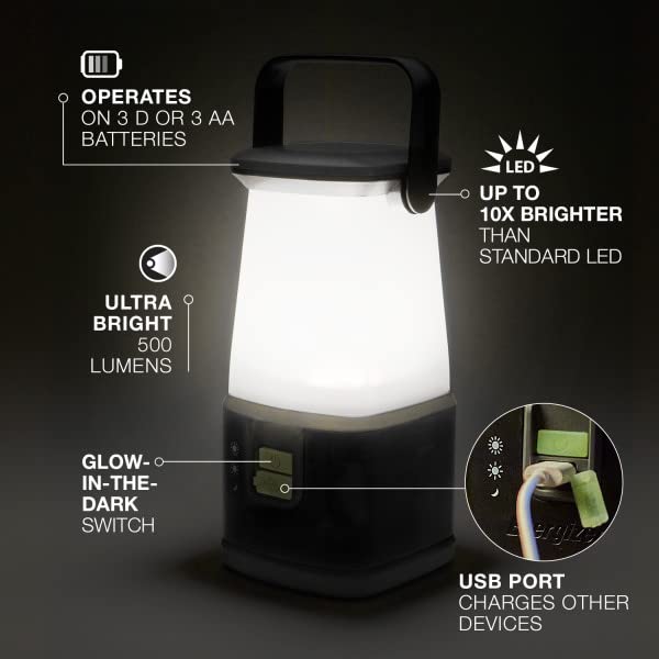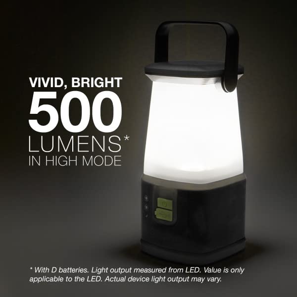 [UP TO 10X BRIGHTER]: Advanced LED technology make this Energizer lantern up to 10x brighter than standard LEDs. On High mode, this powerful light emits 500 lumens with a runtime of 150 hours for extra-long use