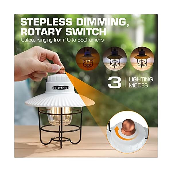 [550 Lumens & 3 Light Modes] With a brightness of up to 550 lumen, Everbrite camping lantern provides 360-degree lighting for your camping. This vintage camp lantern has 3 modes: filament light on, LED light on, filament+LED on, which can create different camping atmospheres.