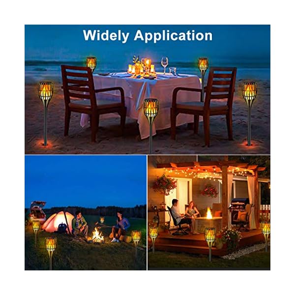 🔥 LONG WORKING TIME – The solar flame torches has built-in 2200 rechargeable battery, it lights up to 12 hours in summer and 5 hours in winter after fully charged. Charging time: 6-8 hours for sunny day.