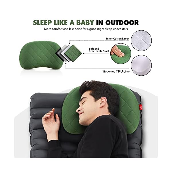 𝐌𝐀𝐊𝐄 𝐀𝐈𝐑 𝐋𝐄𝐀𝐊 𝐈𝐌𝐏𝐎𝐒𝐒𝐈𝐁𝐋𝐄: Unlike those traditional integrated air pillows which can easily develop a leak and become useless, our camping pillow for backpacking consists of a machine washable foam pillowcase and a removable air bladder which is made of premium thickened TPU to prevent air leaks effectively. Assure you a clean and luxurious night sleep outdoors.