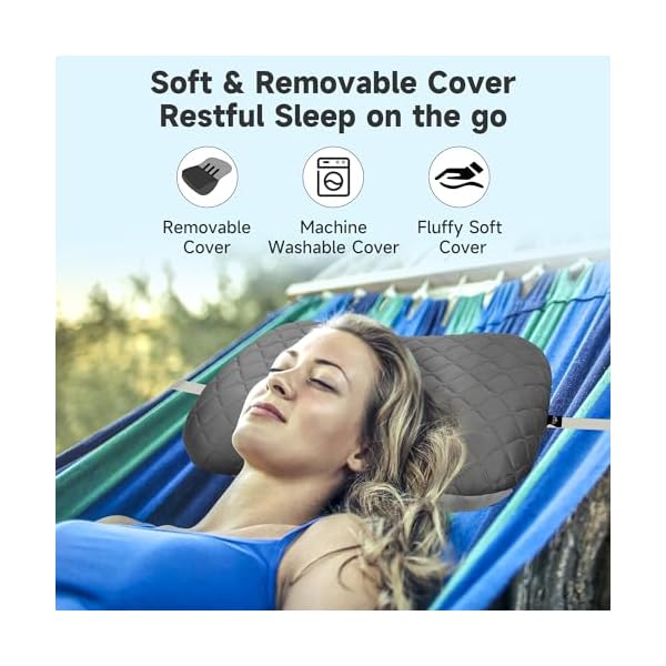 【SOFT & REMOVABLE WASHABLE COVER】 More comfortable with a soft and removable pillow cover. To provide a better camping sleeping experience, this inflatable pillow cover is made of soft, skin-friendly and breathable fabric. Also the cover could be simply removed and washed for easy care.