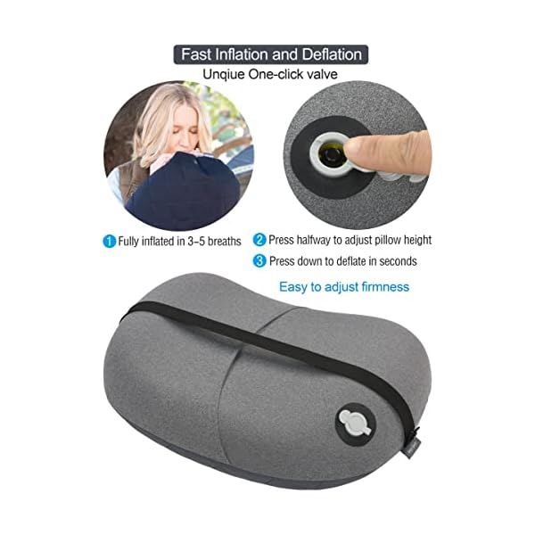 Convenient Click Type One-Way Valve: Inlet valve has a spring loaded stopper that self seals as you inflate. Click the button to blow and air it up to the fullest in only 3-5 breaths, click again to quickly deflate in seconds. Slightly hold on the button to slowly release air to your desired firmness or softness, easy to adjust the comfort.