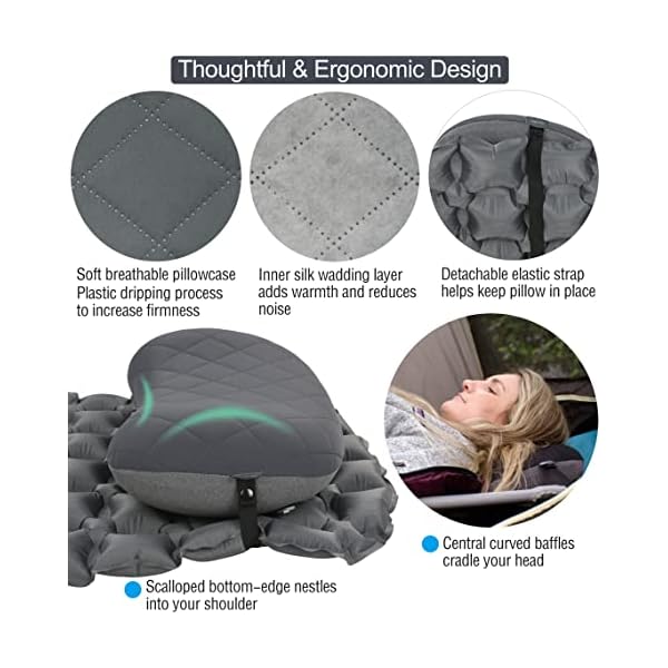 Ergonomic Design for Homelike Comfort: When you sleep on your back, the central sunken baffles keep your head in place; the scalloped bottom edge contours to your neck and comfortably hugs your shoulders. When you sleep on your side, its height makes your head and shoulder width level. You can easily adjust to the height you prefer through the air valve, giving you a good night’s sleep on the trail.