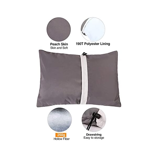 ◀ULTRALIGHT: The outdoor camping travel pillow just weight 0.72lbs/330g. You can storage it in pillowslip itself and you can’t feel its weight from your back
