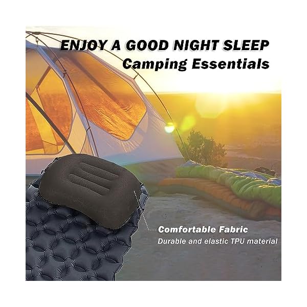 [EASY TO USE] -With the simple click of a button, the pillow inflates to a generous 18x12x4 inches, in only 3-5 breaths. It’s easy to inflate or deflate and it provides comfortable head or lumbar support. Be sure to pack it alongside your sleeping bag, hammock, tent, and backpack.