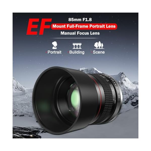 85mm f1.8 Portrait Lens – EF Lens for Canon, Medium Telephoto Lenses Manual Camera for Canon EOS Rebel T8i T7i T7 T6 T6s T6i SL3 SL2 90D 80D 77D 4000D EOS-1D X Mark III/II, 5D Mark IV, 6D Mark II etc
