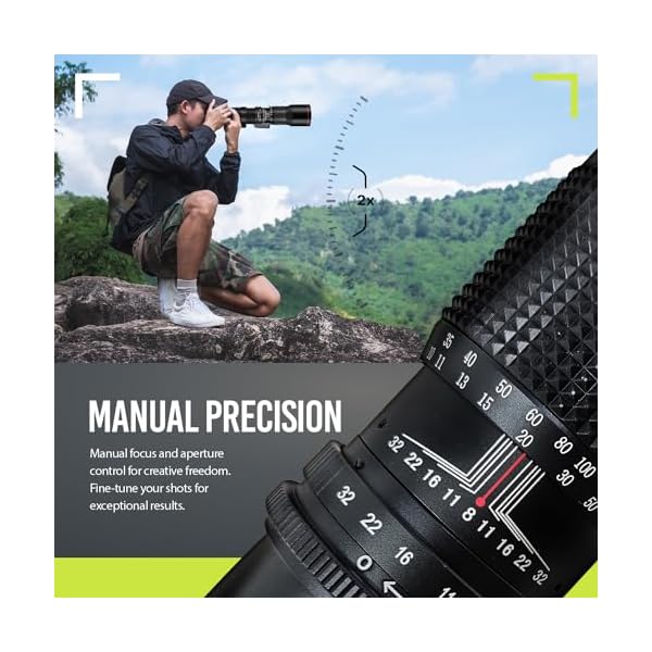 High-power 500mm telephoto focal length – Includes T-mount adapter for digital and 35mm Canon EOS SLR cameras