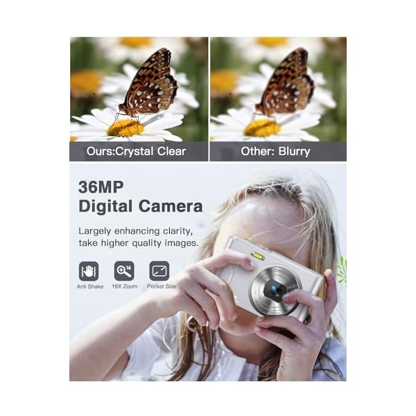 ★☆【𝟮𝟬𝟮𝟯 𝗡𝗲𝘄 𝗥𝗲𝗹𝗲𝗮𝘀𝗲𝗱 𝗞𝗶𝗱𝘀 𝗖𝗮𝗺𝗲𝗿𝗮】With its impressive 36.0-megapixel resolution, this digital camera significantly elevates image clarity when compared to other cameras designed for children and kids. It is an excellent choice as a Christmas present, birthday gift, graduation gift, or holiday gift for teenagers, kids, and students, boys and girls.