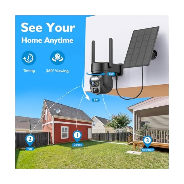 【Wireless Connectivity and Solar Power Supply】 It supports 2.4GHz WiFi connection and runs with continuous power supply from a high-conversion-rate solar panel. Equipped with a 2000mAh ultra-high capacity battery, each charge provides long-lasting power, don’t worry about the weather.