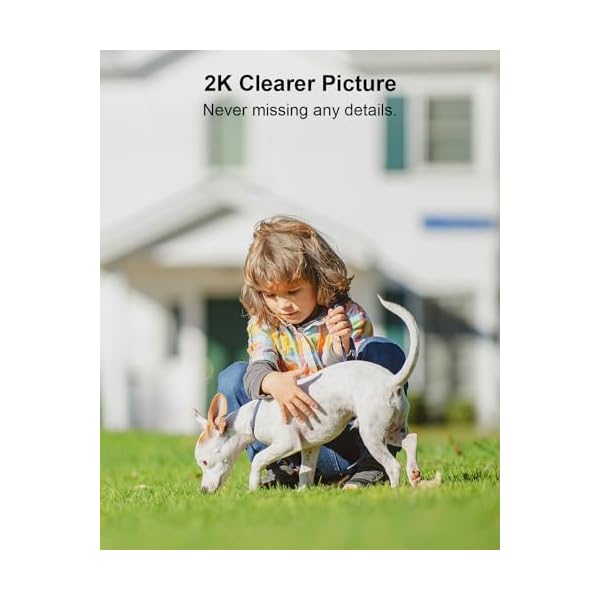 2K Powerful Camera: 65% improved from 1080p. Motion and human detection. 133° wide viewing angle and 15x digital zoom, every detail of your property is in your hand. Integrated spotlight and color night vision make it clear at night.