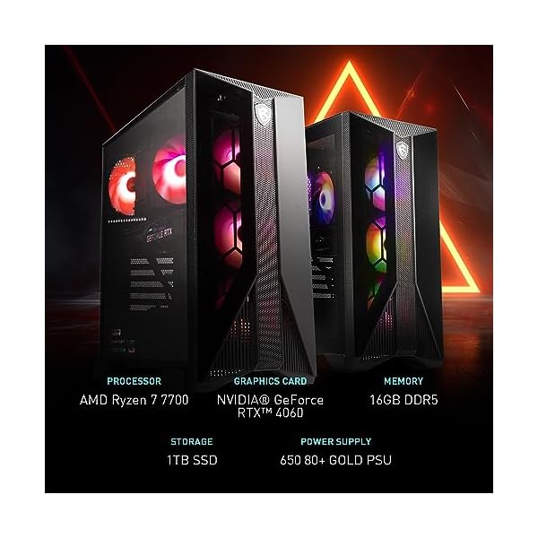 MSI Aegis ZS Gaming Desktop, AMD Ryzen 7 7700, GeForce RTX 4060, 16GB RAM, 1TB SSD, RGB Fan Cooling, Wi-Fi 6E, Keyboard & Mouse Included, DIY Friendly, Windows 11 Home-Adv: 7NUC-607US