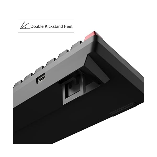 Full anti-ghosting keyboard: all 68 keys are no conflict, black grey red mash up design, ergonomic suspension double-color injection keycap, double kickstand feet adjustable typing angle and detachable usb cable, both practical and beautiful.