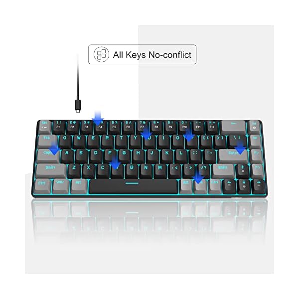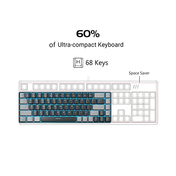 Mini portable 60% compact layout: MK-Box is a 68 keys mechanical keyboard have cute small size, separate arrow keys and all your F-keys you need, can use it for gaming or work while saving space.