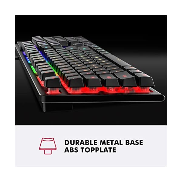 Durable Full-Sized Gaming Keyboard: Made with highly-resistant ABS plastic and metal base for longevity, and durability. With a mechanical brown switch gaming feeling that delivers precise tactile feedback and responsiveness.