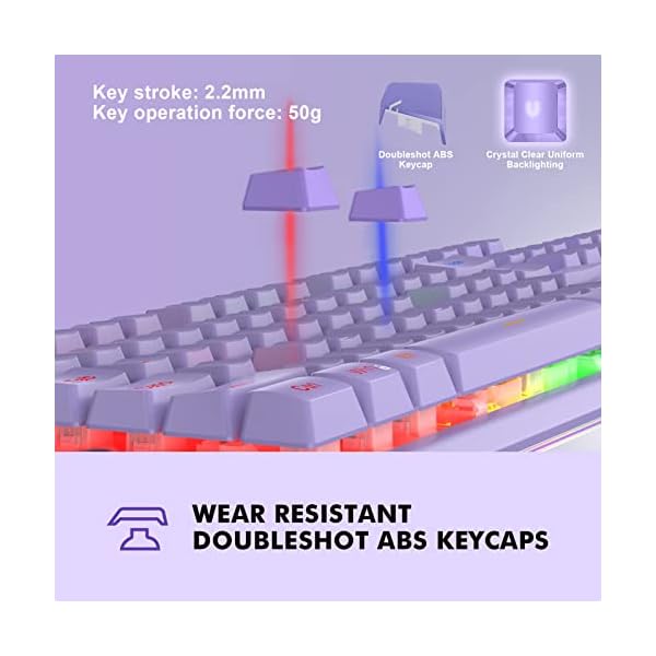 Wear Resistant Doubleshot ABS Keycaps: The UV coating ensures more fade-resistant legends and greater protection against wear and tear from frequent use. The ergonomic stair-up keycap design brings maximum comfort keeping your hand in a natural state to minimize hand fatigue.