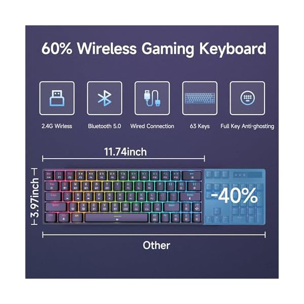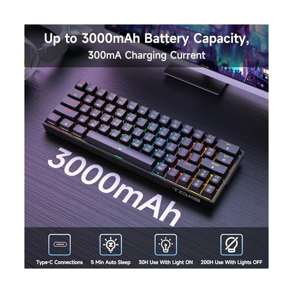 Compact 60% Layout: Designed for space-saving efficiency,bluetooth keyboard features a compact 60% layout. Enjoy a clutter-free workspace without compromising on functionality or comfort.