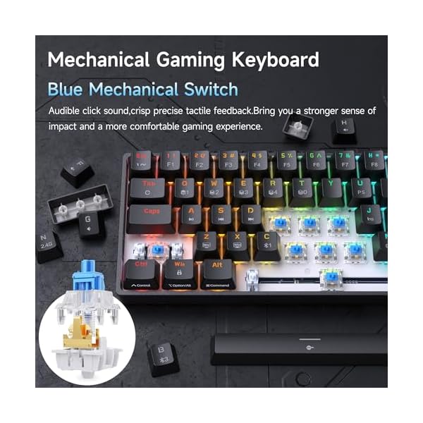 Audible Click:The Blue Switch mechanical keyboard offers a satisfying tactile feedback and audible click. With each keypress, users feel a noticeable bump or click, providing a satisfying typing experience. The distinct click sound adds to the overall feedback.