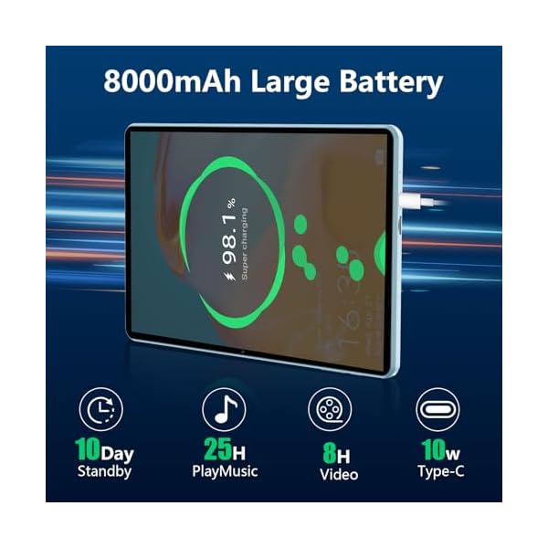 This Android tablet comes with an ultra-large 8000mAh battery with more than 8 hours of usage time, ensuring that you will not be interrupted while you work, study, or play. The tailor-made case provides full protection and a comfortable standing experience for the tablet.